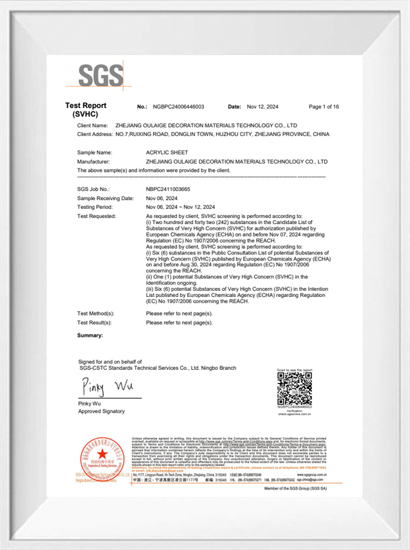 Hangzhou Oleg International Trade Co., Ltd. Bridges dessa två domäner genom att erbjuda tjocka akrylark tillverkade via miljövänliga processer. Till exempel: